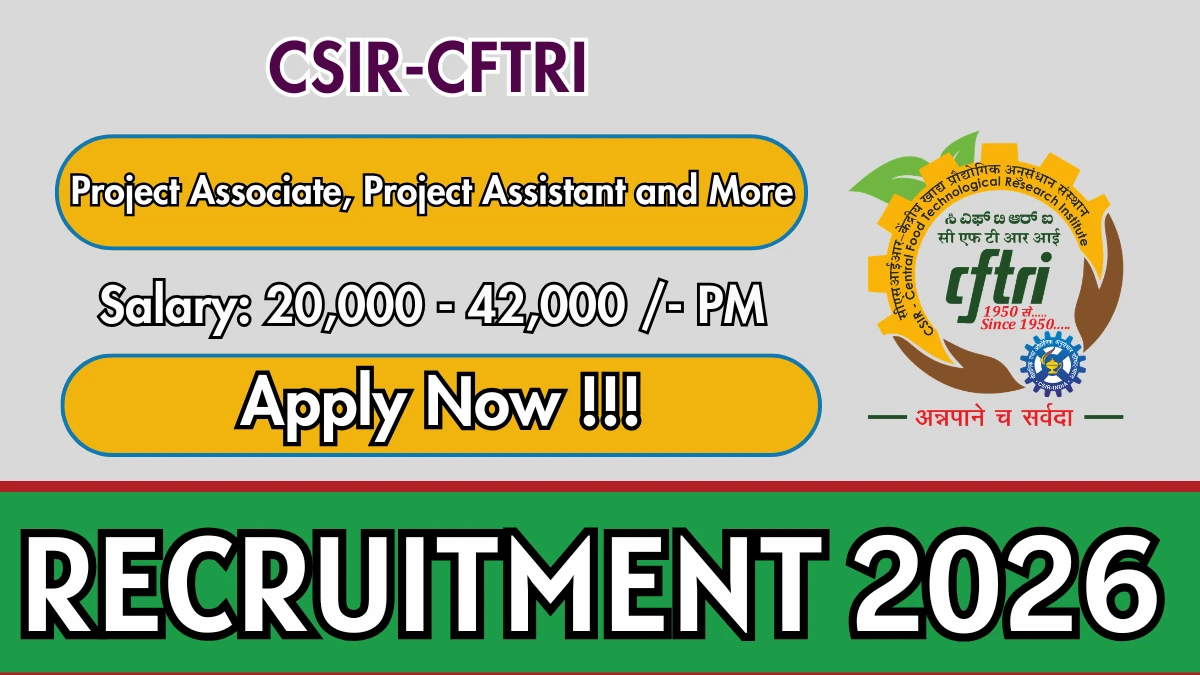 CSIR-CFTRI Recruitment 2026 – Apply Online forProject Associate, Project Assistant and More Posts March 19, 2026 by YuvaMedia … Read more
