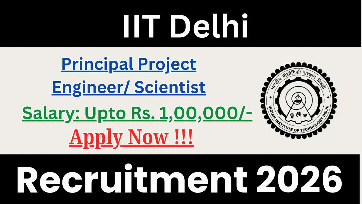 Indian Institute of Technology Delhi (IIT Delhi) has issued notification of recruitment of IIT Delhi Principal Project Engineer/ Scientist. If you want to get the job of Principal Project Engineer/ Scientist in the IIT Delhi, then you must submit the form before 06 February 2026.