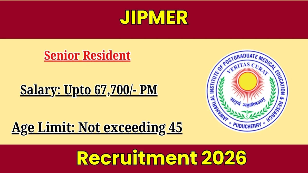 Jawaharlal Institute of Postgraduate Medical Education and Research has issued notification of recruitment of JIPMER Senior Resident. If you want to get the job of Senior Resident in the JIPMER, then you must submit the form before 03.02.2026.