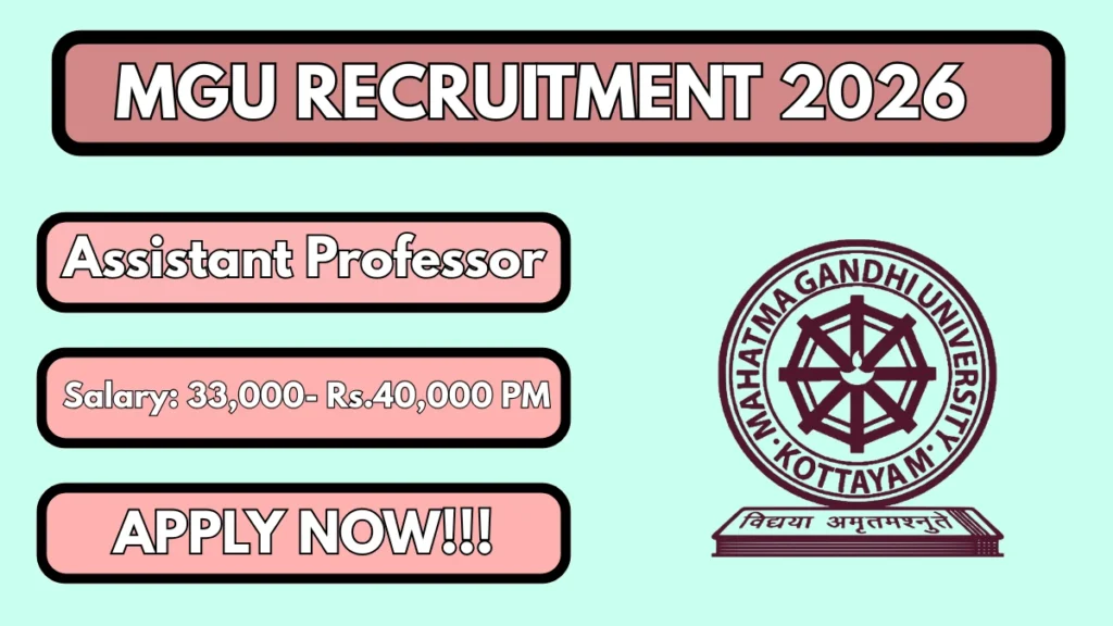 Mahatma Gandhi University has issued a notification of recruitment of MGU Assistant Professor. If you want to get the job of Assistant Professor in the MGU, then you must submit the form before January 20, 2026.