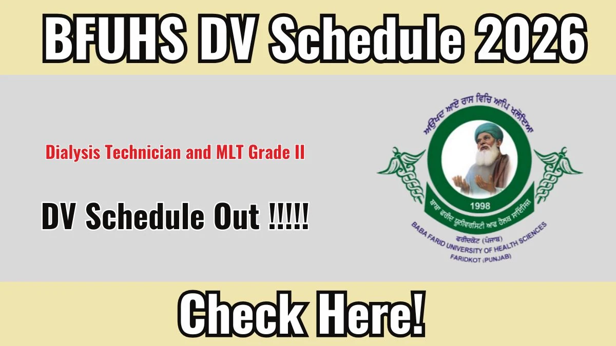 BFUHS DV Schedule 2026 – Dialysis Technician and MLT Grade II January 30, 2026 by YuvaMedia … Read more