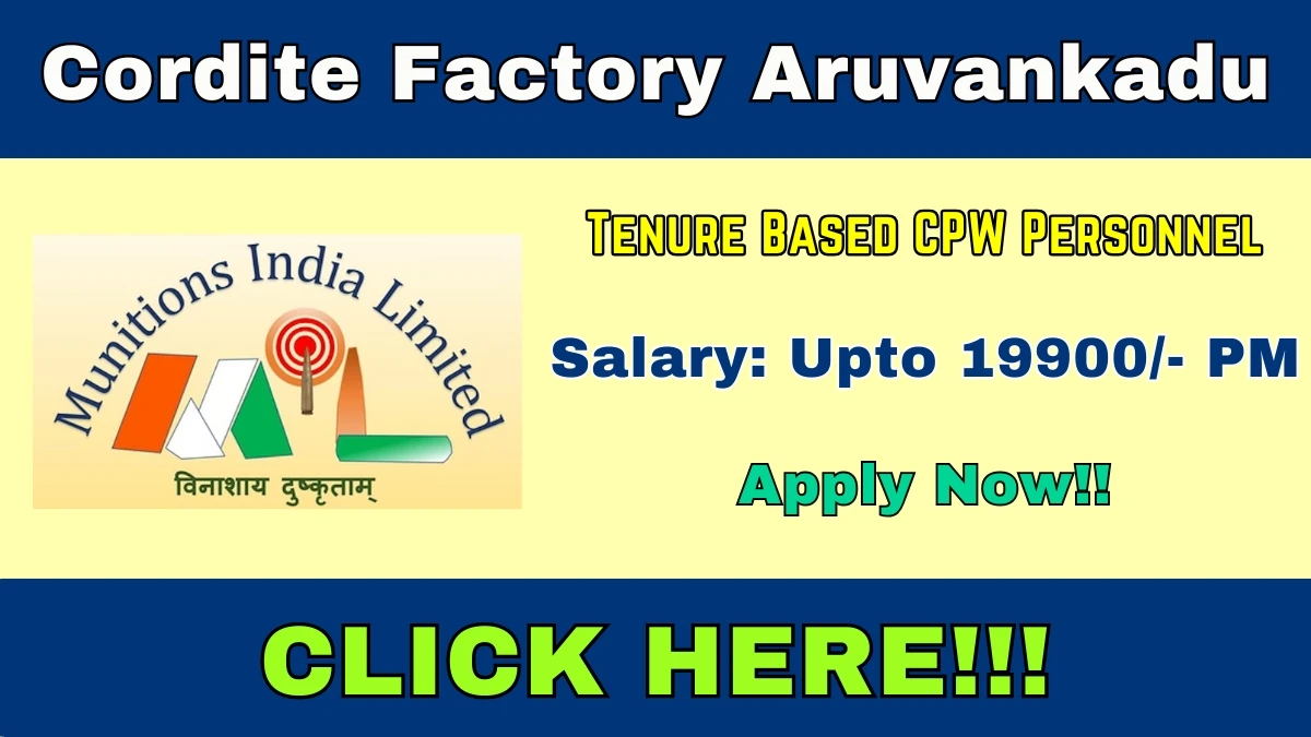 Cordite Factory Aruvankadu Tenure Based CPW Personnel Recruitment 2026 Out January 27, 2026 by YuvaMedia … Read more