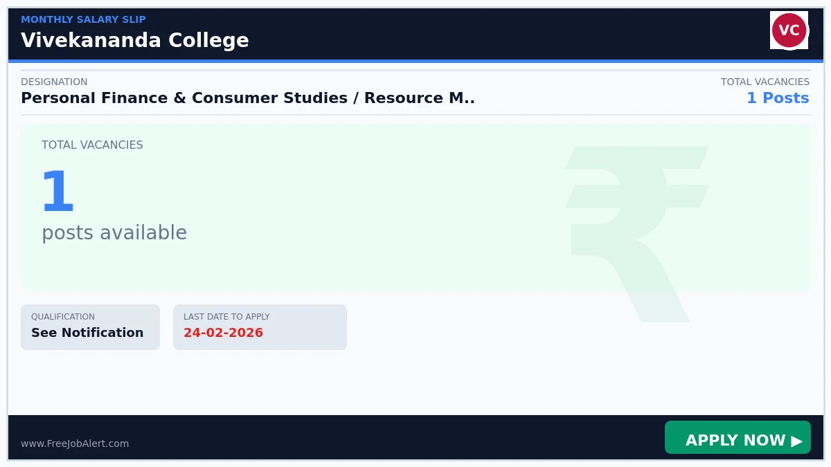 Vivekananda College Assistant Professor (Guest Faculty) Recruitment 2026 February 19, 2026 by YuvaMedia … Read more