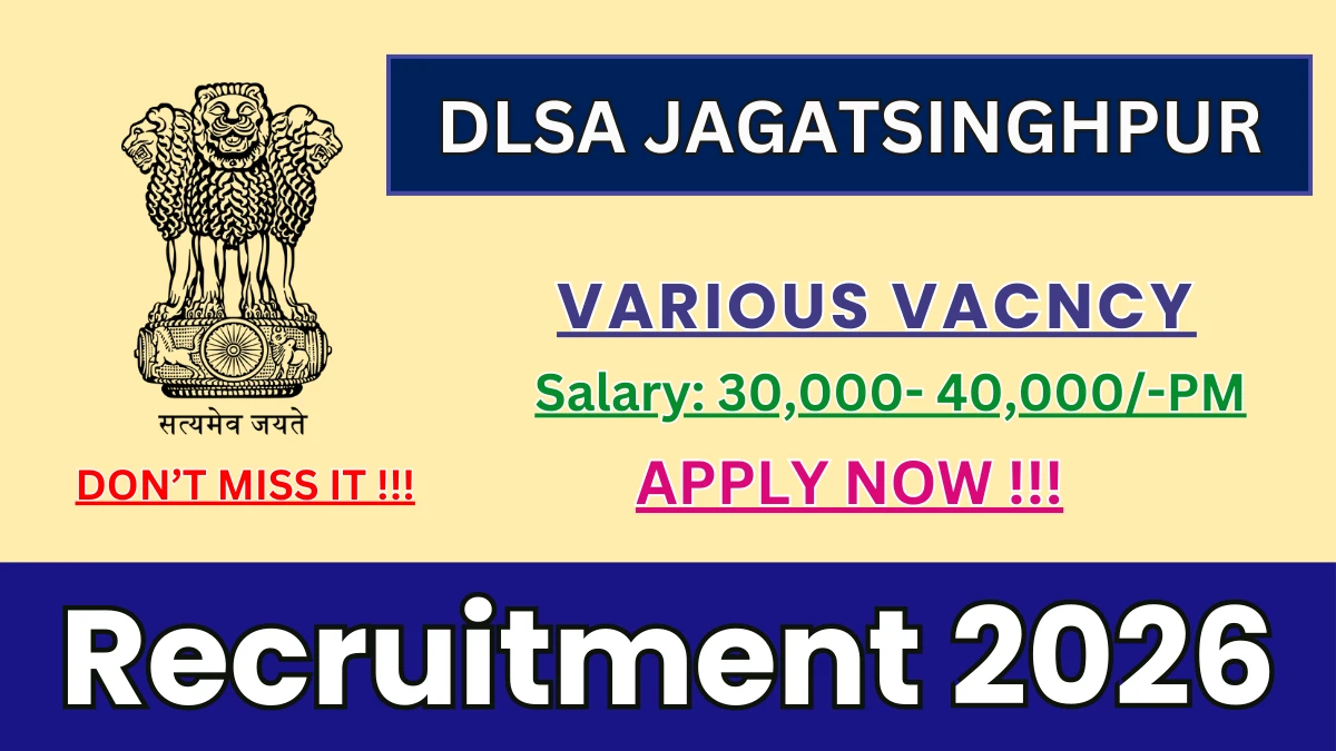 DLSA Jagatsinghpur Recruitment 2026 – Apply Offline for Chief Legal, Assistant Legal and More Posts February 18, 2026 by YuvaMedia … Read more
