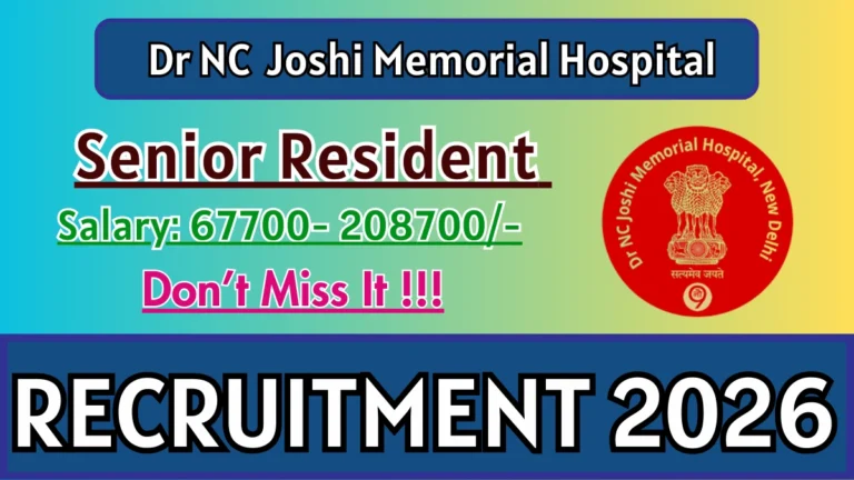 Dr NC Joshi Memorial Hospital Delhi Senior Resident Recruitment 2026 – Walk in for 01 Posts