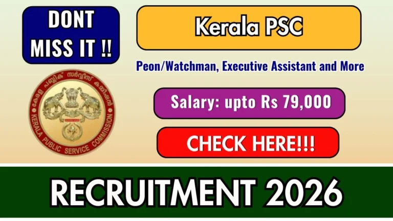 Kerala PSC Peon/Watchman, Executive Assistant and More Recruitment 2026