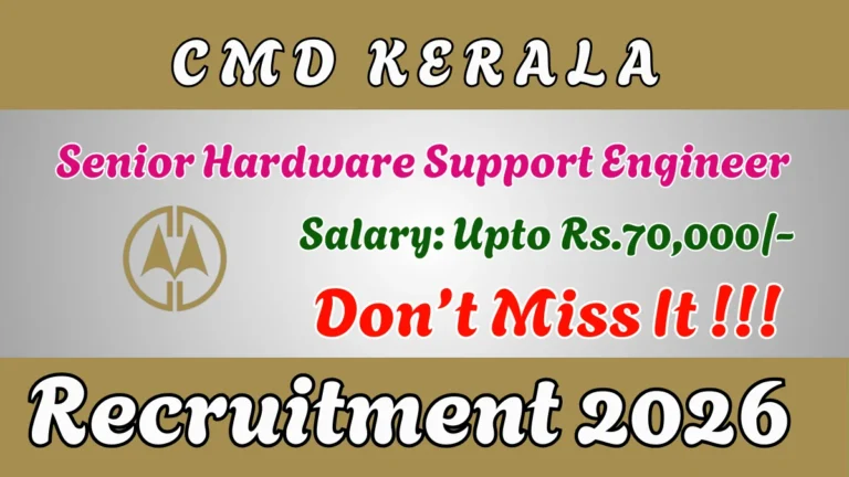 CMD Kerala Senior Hardware Support Engineer Recruitment 2026