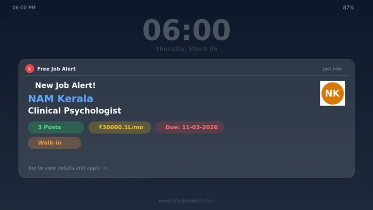 Apply for Various Posts job in National AYUSH Mission Kerala: Company Name: National AYUSH Mission Kerala (NAM Kerala) Name of the Post: Clinical Psychologist, Pharmacist ... Read more