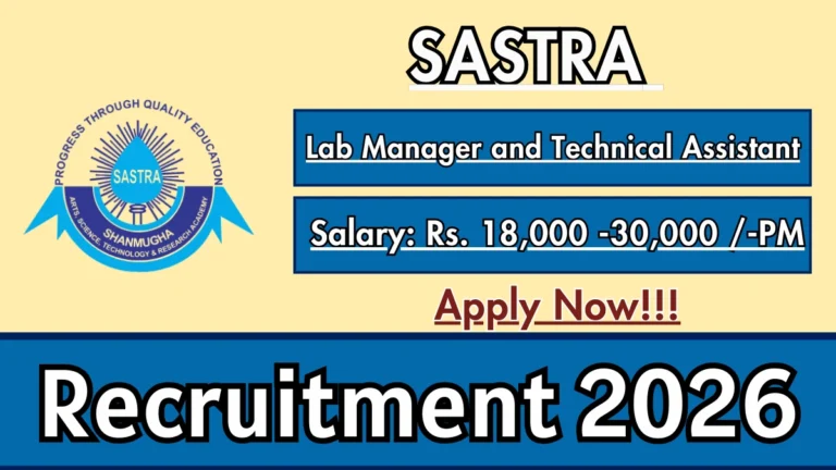 SASTRA Recruitment 2026 – Apply Online Lab Manager and Technical Assistant Posts