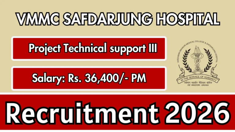 VMMC Safdarjung Hospital Project Technical support III Recruitment 2026 – Apply Online